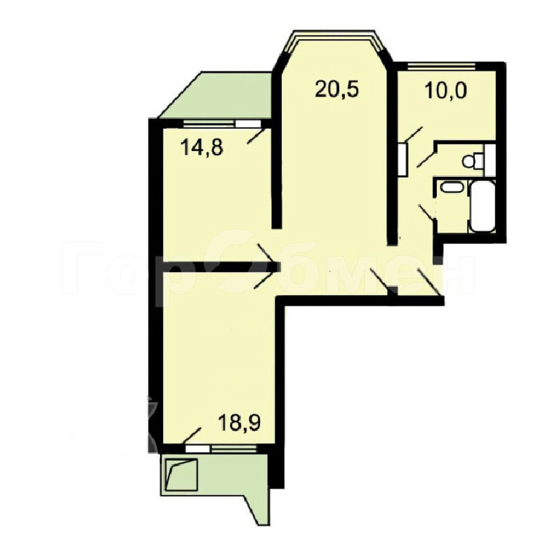 Комнаты: 14.8 18.9 20.5 м2